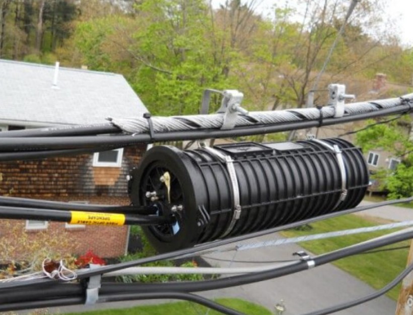 การติดตั้งเหนือศีรษะ: การติดตั้งเหนือศีรษะคือการแก้ไขการปิดประกบกันของไฟเบอร์ออปติกบนเสาหรือฉากยึด ซึ่งเหมาะสำหรับการเชื่อมต่อสายเคเบิลแสงหลักในเมืองหรือชานเมือง จำเป็นต้องใช้ชั้นวาง สกรู และอุปกรณ์เสริมอื่นๆ ระหว่างการติดตั้งเพื่อให้แน่ใจว่ากล่องต่อประกบมีความมั่นคง วิธีการติดตั้งนี้เหมาะสำหรับสถานการณ์ที่ต้องลดการรบกวนภาคพื้นดิน เช่น จุดเข้าใช้งานในเครือข่าย FTTH