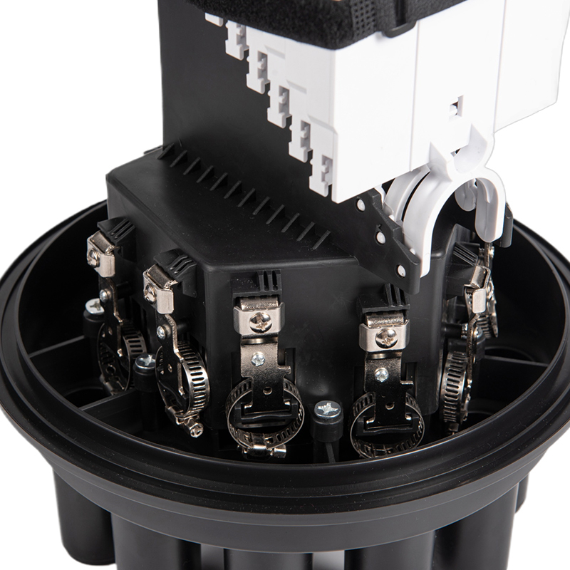 การต่อประกบไฟเบอร์ออปติก GGSSC109 ใช้อุปกรณ์ยึดที่ปลอดภัย เช่น สายรัดสีดำที่แสดงไว้ เพื่อให้แน่ใจว่าตัวปิดจะรักษาการซีลที่แน่นหนา เพื่อป้องกันไม่ให้สิ่งปนเปื้อนเข้ามาและรักษาความสมบูรณ์ของข้อต่อ สายรัดเคเบิลให้การรักษาความปลอดภัยอีกชั้นหนึ่ง ทำให้มั่นใจได้ว่าตัวปิดจะอยู่กับที่แม้ในสภาวะที่ไม่เอื้ออำนวย